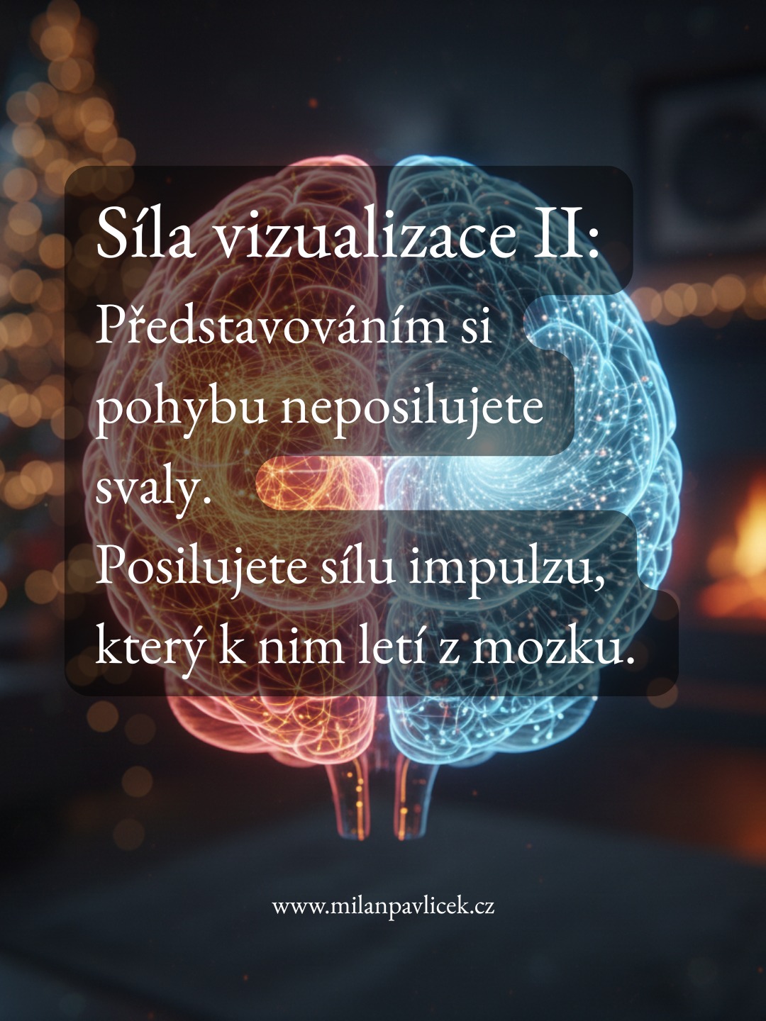 PROČ NA TOM ZÁLEŽÍ? Ukazuje to, že "síla" není jen v pažích. Síla vzniká v hlavě. Když si před výkonem vizualizujete úspěch, neděláte si jen "dobře". Fyzicky ladíte vysílač (mozek) na silnější frekvenci. Když si vizualizujete selhání, sami si ten signál rušíte.