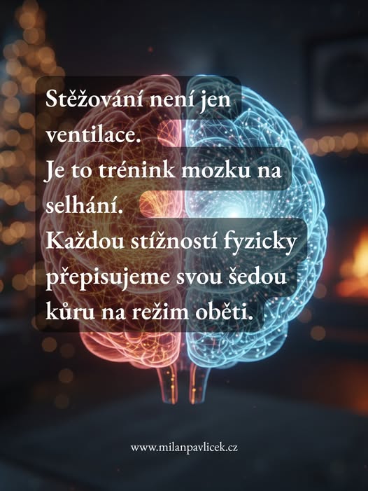 ZÁVĚR? Chronické stěžování je biologický signál, který uzamyká mozek v defenzivním stavu. Pokud chcete změnu, musíte přestat trénovat svou vlastní bezmoc.