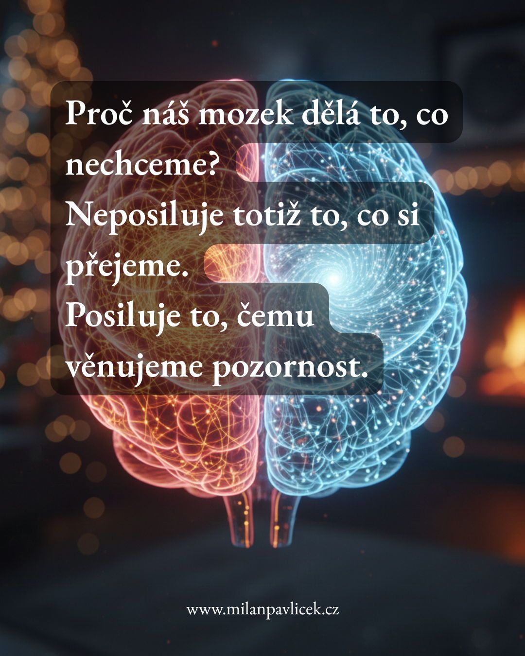 V ČEM JE PROBLÉM? Váš mozek nerozlišuje mezi "dobrým" a "špatným". Je mu jedno, jestli budujete vnitřní klid, nebo úzkostnou spirálu. Prostě posiluje to, čemu věnujete ČAS.